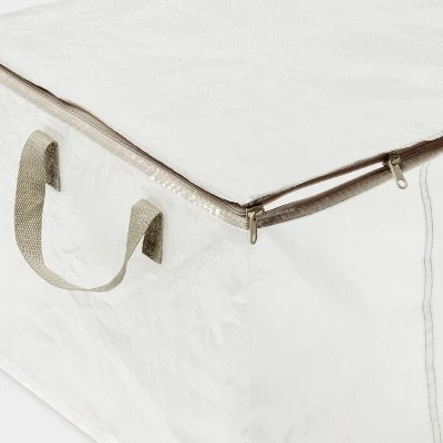 Save space and organize your items with this 3-Pack Storage Large Capacity Bags from Brightroom™. This pack includes three transparent storage bags, allowing quick identification of contents, and features a zipper closure to access the stored items quickly. Plus, the storage bags come with side handles, and their large size makes them suitable for storing linens, beddings, clothing and more.